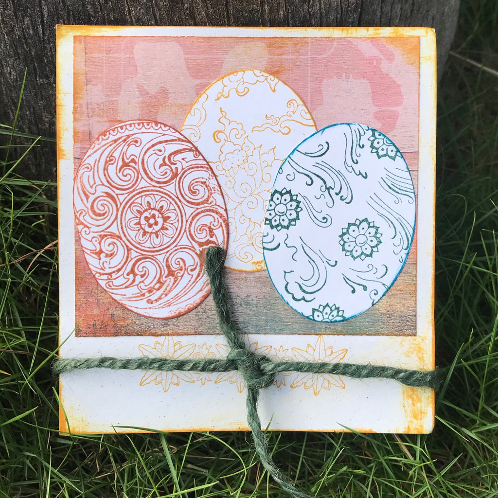 This natural rubber stamp is mounted on a sustainable maple wood handle.