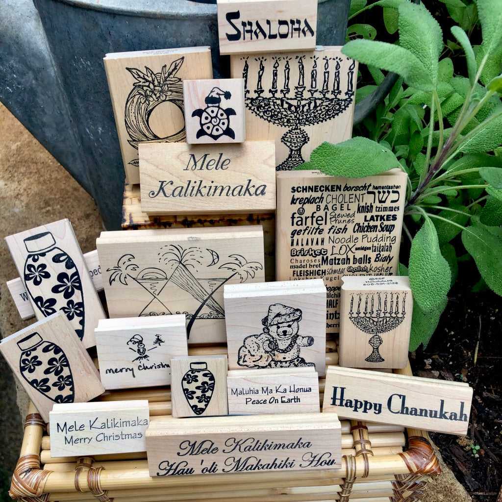 Mele Kalikimaka means Merry Christmas in Hawaiian. Watch out! Perfect for your Holiday cards and decor. Stamp on napkins, table runners,  candy dishes, mirrors, ribbons for centerpieces and so much more.