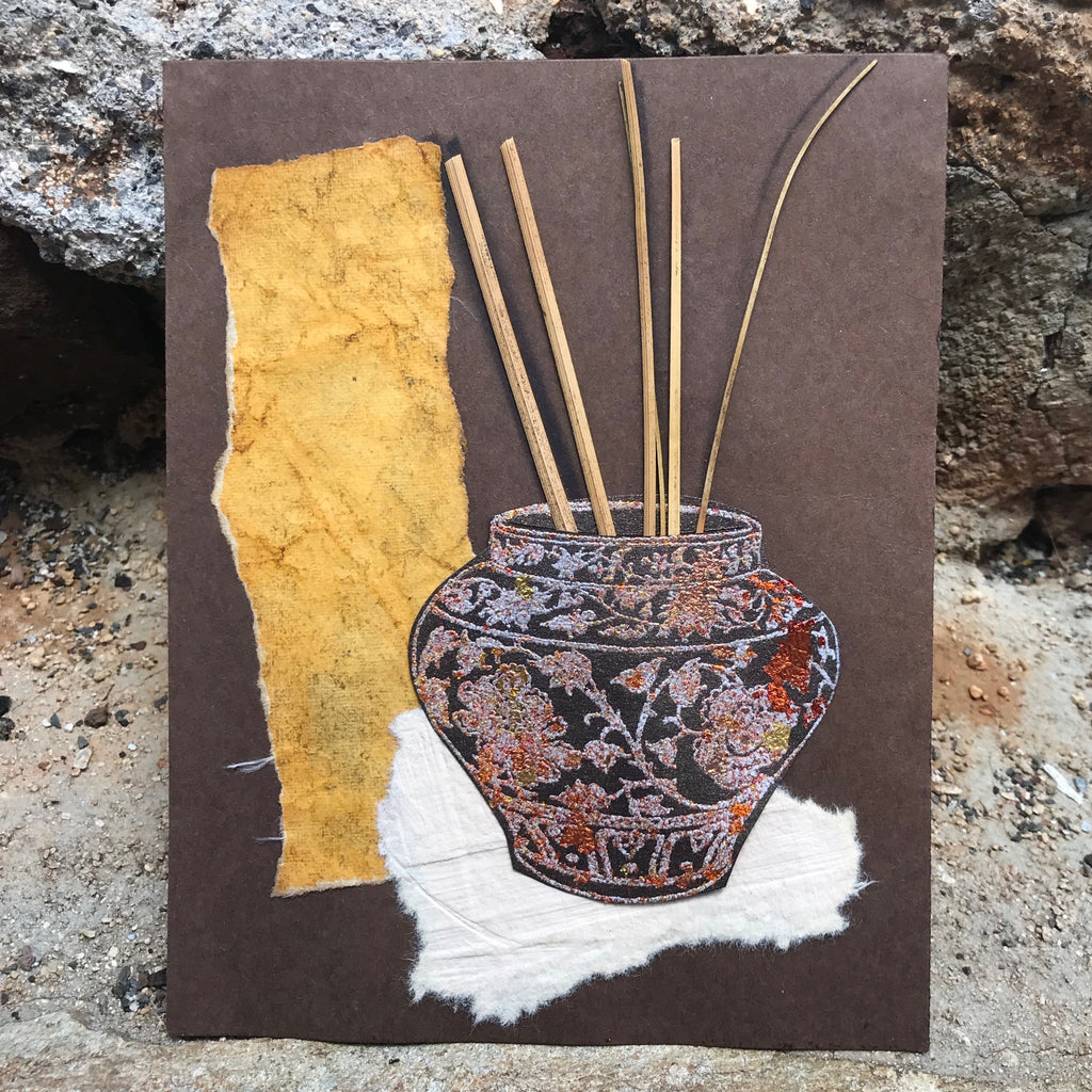 Sample cards pictured also use the Korean Mosaic and Retro Border stamps.