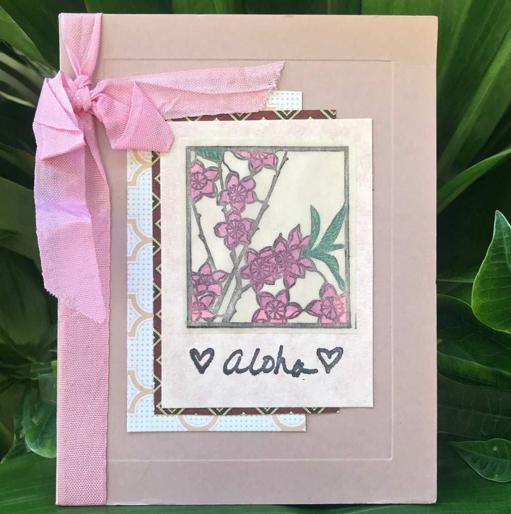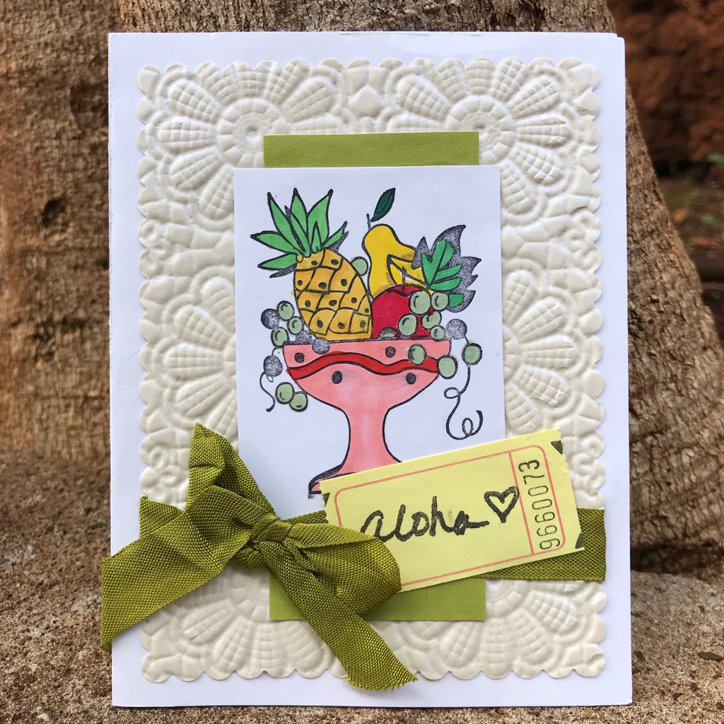 Sample cards pictured also use the Monstera PanelLarge Monstera BorderFruit BowlX-Large Wave and Cherry Blossom Block stamps.