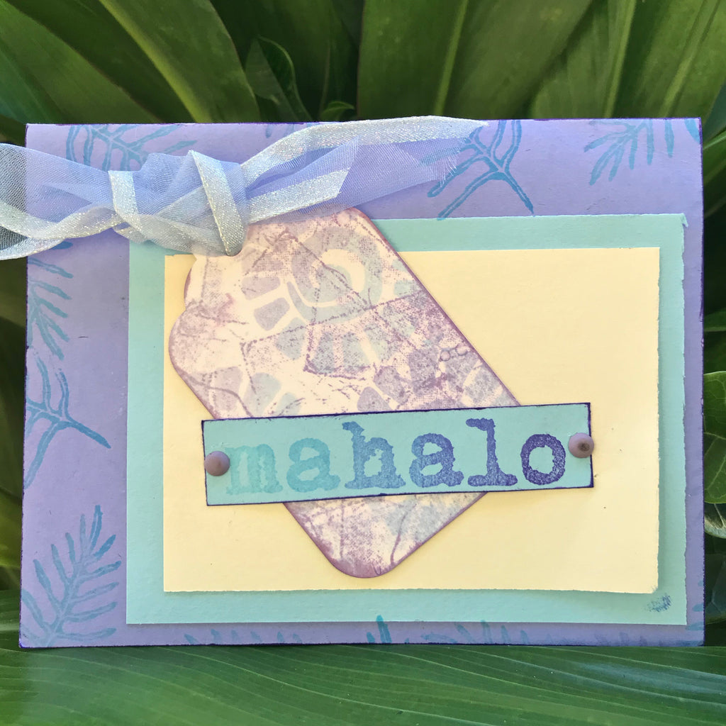 Sample cards pictured also use the Small Laua'e and Type Mahalo stamps.